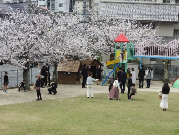 春のやわらかな陽ざしに包まれて心地よいお天気の中、入園式を行いました。園庭の桜も満開で新しいスタートをお祝いしてくれているようでした。