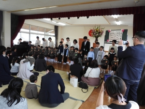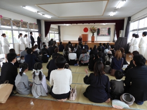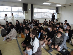 少し緊張した表情の子ども達でしたが、保護者の皆様と一緒に式に参加する中で、少しずつ笑顔も見られるようになりました。卒園児でもある兄姉さん達も一緒に園歌を歌ってくれて、とても心あたたまる式になりました。