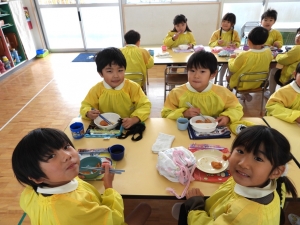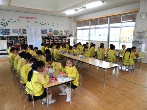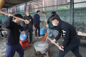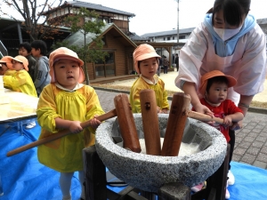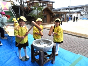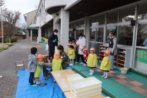 早朝からの保護者の皆様、及び、卒園児の保護者の方々のご協力のおかげで、無事に餅つきを行う事が出来ました。心より感謝申し上げます。